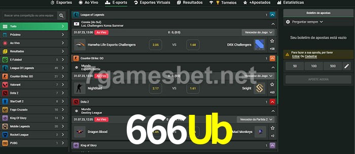 O 666Ub oferece uma grande seleção de opções de apostas em e-sports com probabilidades competitivas